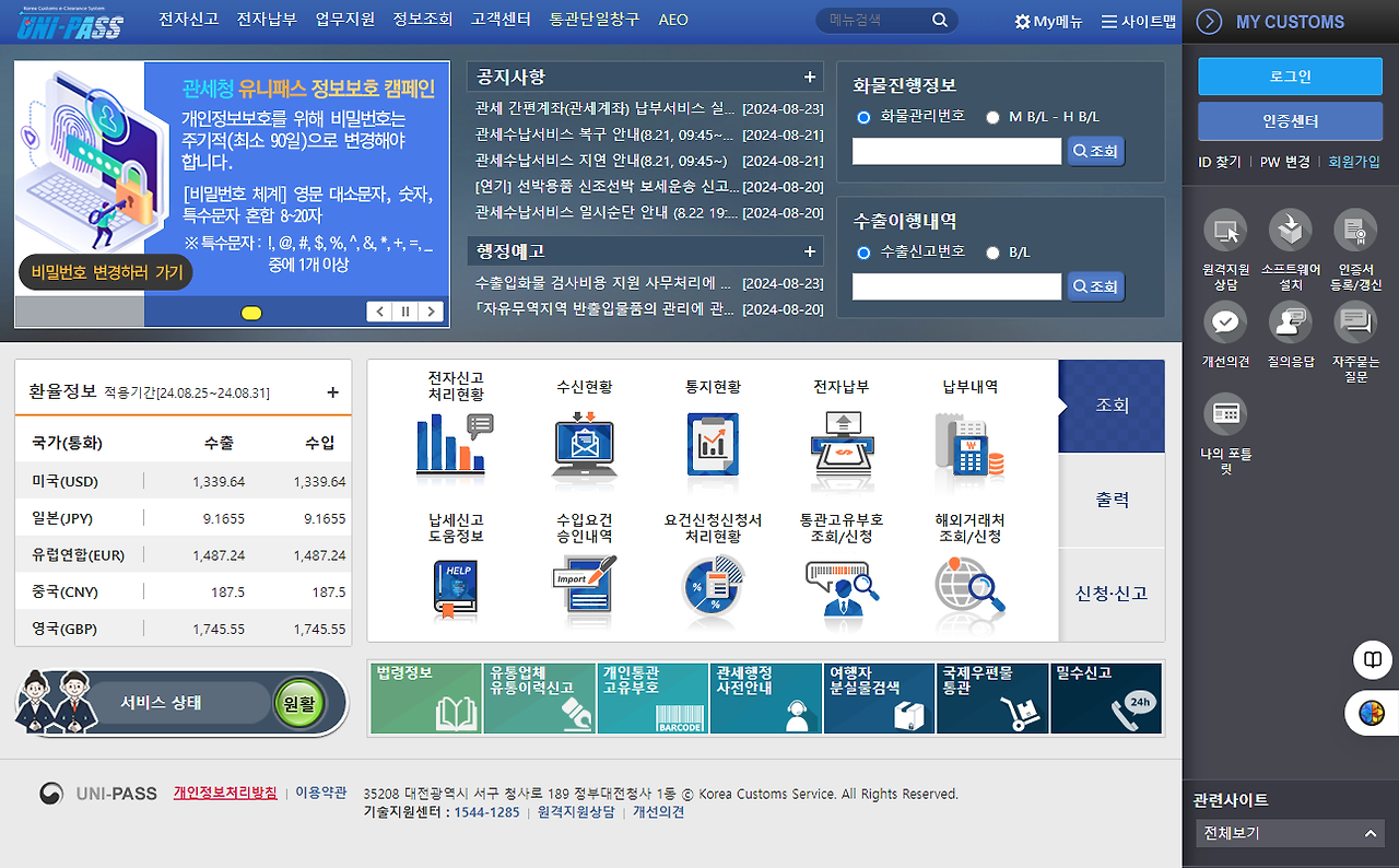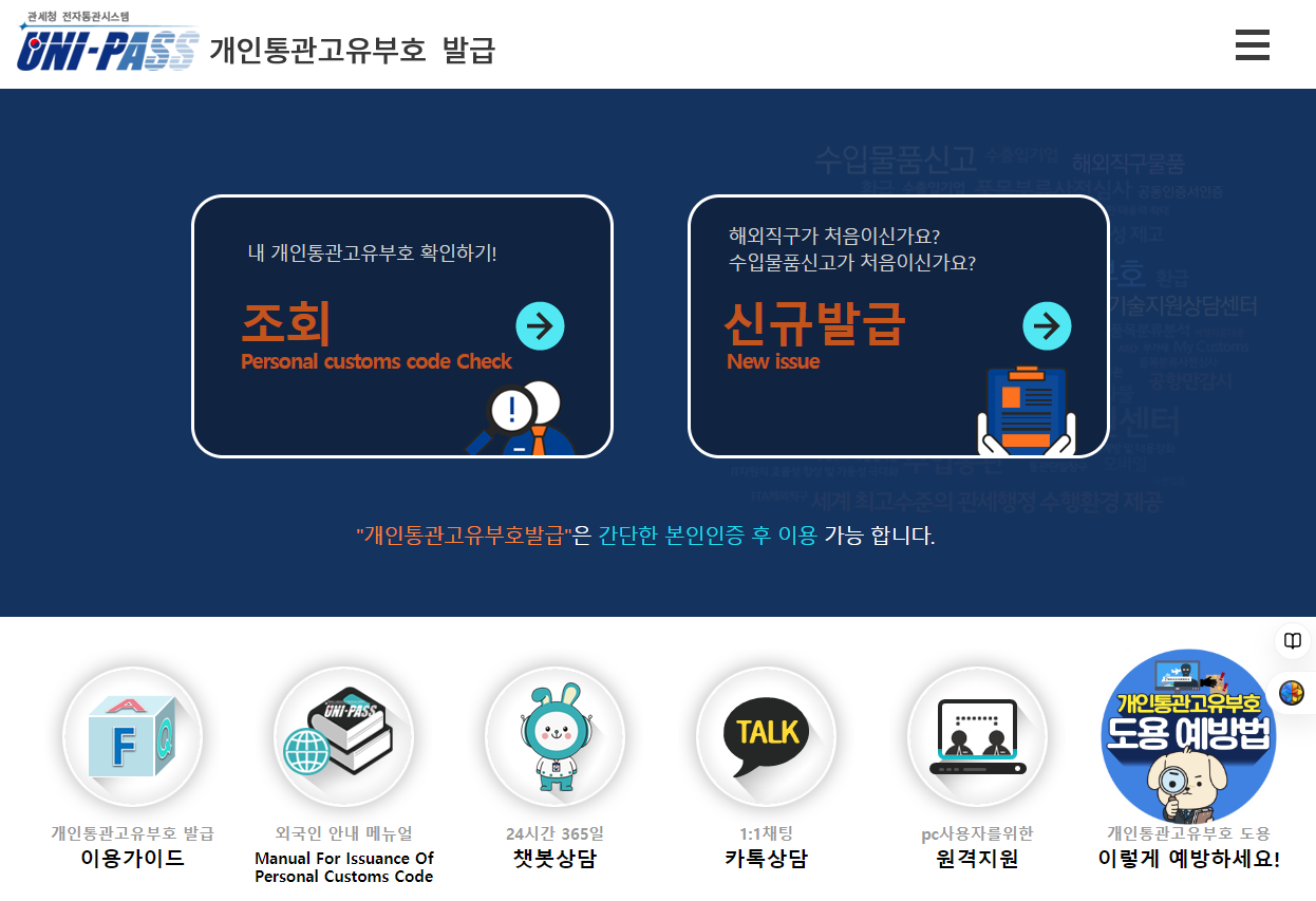 - 관세청 UNI-PASS 사이트 접속