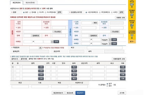 건별 발급을 클릭하시면, 아래와 같은 세금계산서 화면이 나타나는데요.