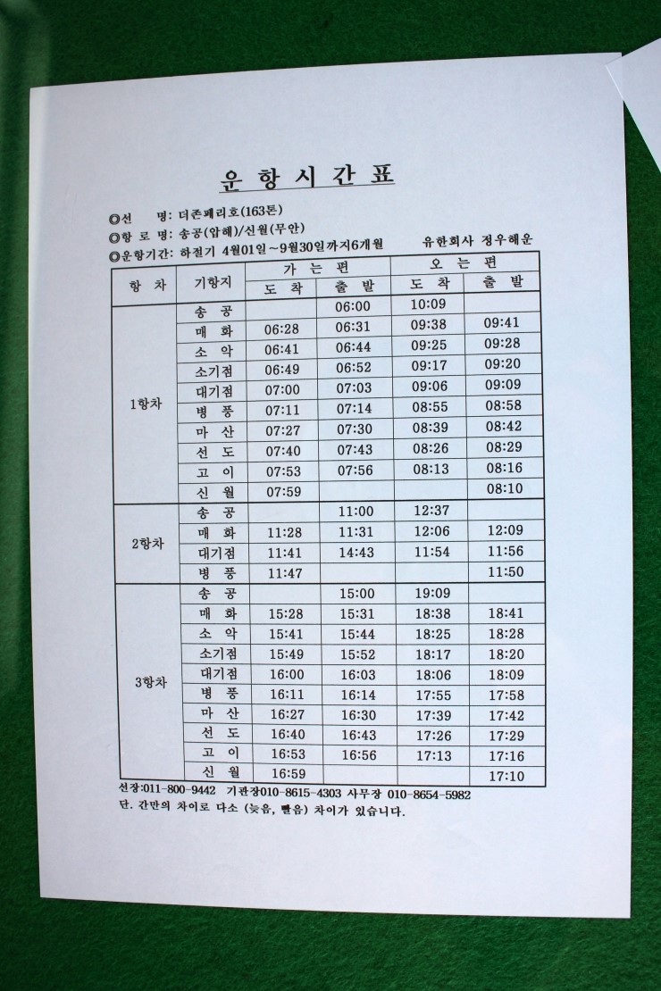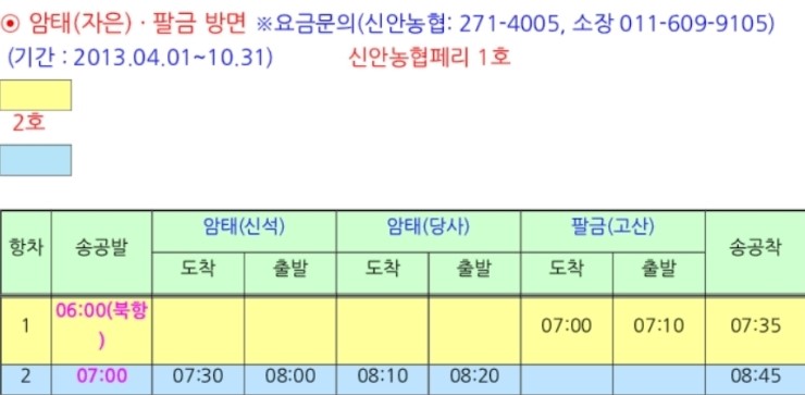 송공항에서의 배 편은 아침 7시부터 저녁 8시까지 매시간 운행되며, 특히 암태 5도는 시간 제한 없이 지속적으로 운행됩니다. 운항 시간 및 기타 정보에 대한 문의는 신안농협페리호와 대흥페리에게 가능합니다.