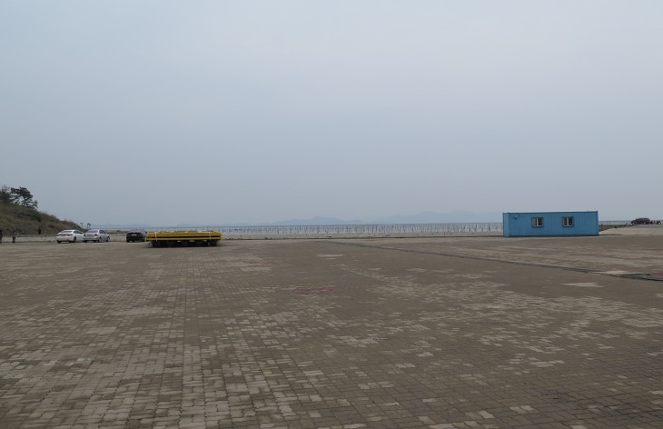 송공항 여객터미널과 약간의 거리를 두고 천사섬 분재공원 주차장이 있습니다. 이 곳은 터미널보다 더 넓게 구성되어 있지만, 그에 비해 방문객 수는 상대적으로 적습니다. 주차장 바로 앞에는 바다가 펼쳐져 있지만, 뻘밭 때문에 물이 약간 탁해 보일 수 있습니다.