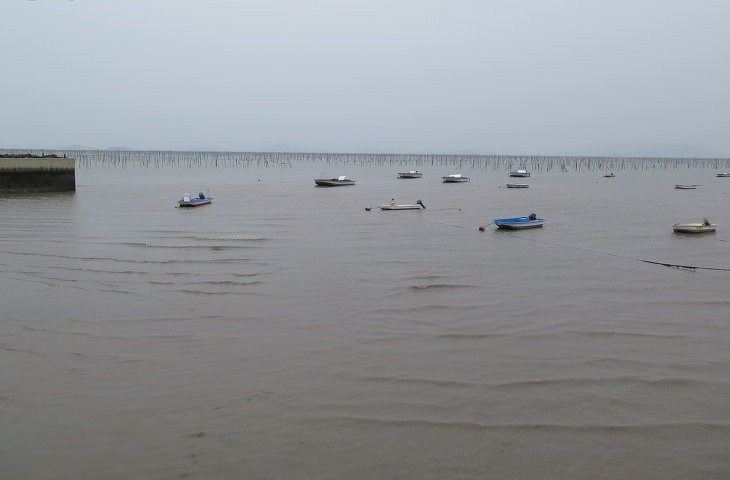 주차장 바로 앞에 바다가 있지만, 뻘밭이어서 그런지 물색이 탁하다.