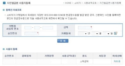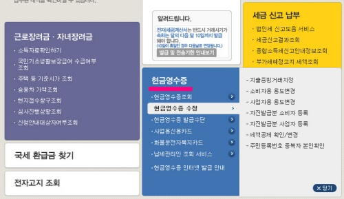 이곳에서 현금영수증카드 발급은 물론 조회 및 자진발급분 등록도 가능합니다.